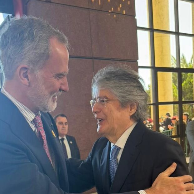 En el marco de la ceremonia, el exgobernante de Ecuador tuvo la oportunidad de saludar a varias autoridades iberoamericanas, entre ellas el rey Felipe VI de España, los expresidentes Gabriel Boric, Mariano Rajoy, Iván Duque y Eduardo Frei, así como a la premio Nobel de la Paz, María Corina Machado.